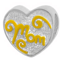 Wholesale silver jewelry - Gold plated word Mom on 925 sterling silver heart for Italian charm bead jewelry