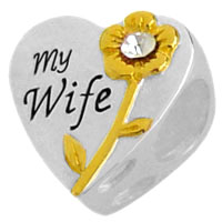 Wholesale silver jewelry - Word My Wife with cz stone on flower 925 sterling silver heart charm for 3 mm chain bracelets and necklaces, compatible with European modular jewelry and Murano bead jewellery.