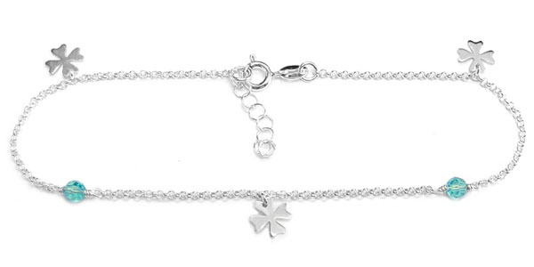 925 sterling silver chain anklet with four leaf clover charms