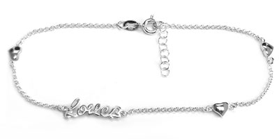 925 sterling silver chain anklet with word Love and hearts