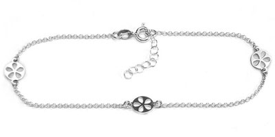 1.2 mm, 925 sterling silver rolo chain anklet with flowers