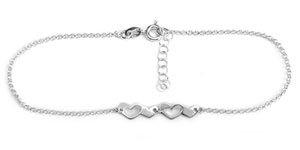 Sterling silver chain anklet with two double hearts