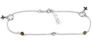 925 sterling silver chain anklet with cross charms and brown cz stones