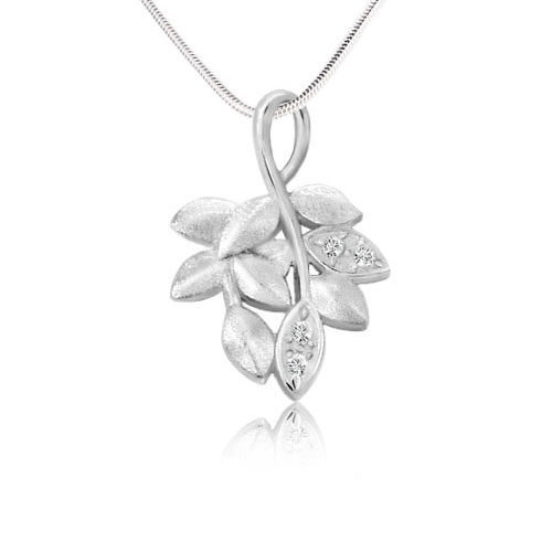 925 sterling silver leaf pendant with cz stones