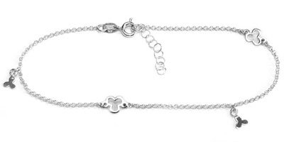 925 sterling silver rolo chain anklet with clovers