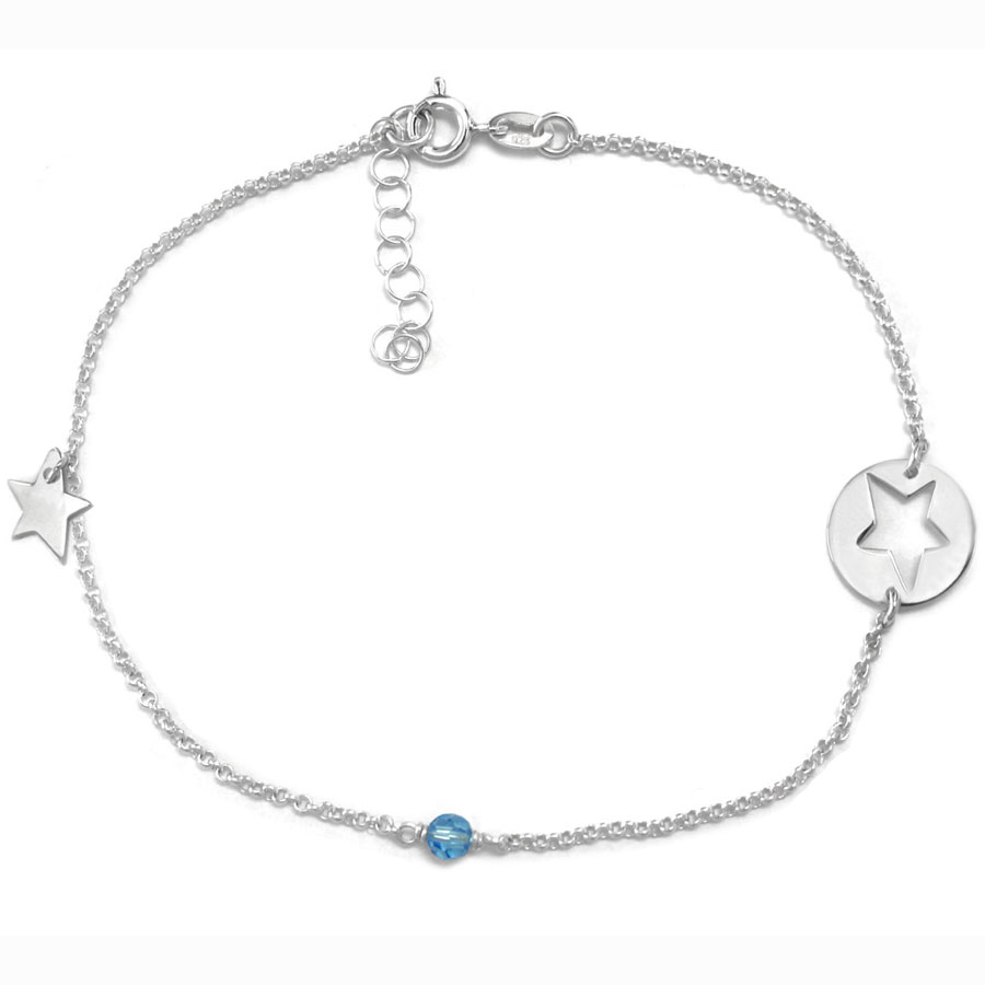 925 sterling silver rolo chain with stars and cz stone anklet