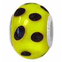 Wholesale silver jewelry - Black polka dots on yellow glass bead with 925 sterling silver caps for personalized silver jewelry.