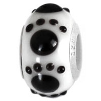 Wholesale silver bead jewelry: dog paw prints on white glass bead with 925 sterling silver caps for 3 mm chain European modular charm bracelets and necklaces.