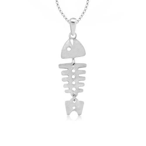 Wholesale silver jewelry: Ice matte finish 925 sterling silver fish bone pendant charm