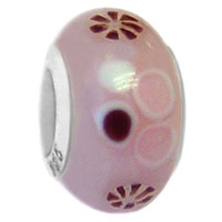 Wholesale silver jewelry - flowers and petals on pink glass bead with 925 sterling silver caps for 3 mm chain European modular charm bracelets and necklaces.