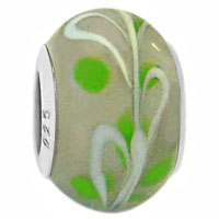 Wholesale silver jewelry - White stem and light green dots on off white color glass bead with 925 silver caps for 3 mm chain European modular charm bracelets and necklaces.