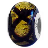 Wholesale silver jewelry - Gold foil on black glass bead with 925 sterling silver caps for 3 mm chain European modular charm bracelets and necklaces.