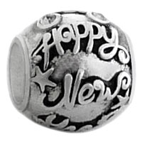 Wholesale silver jewelry - Word Happy New Year on 925 sterling silver bead charm for 3 mm chain bracelets and necklaces, compatible with European modular jewelry and Murano bead jewellery.