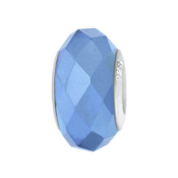 Light Amethyst color June glass birthstone with 925 sterling silver cap charm for 3 mm chain bracelets and necklaces, compatible with European modular jewelry.