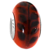 Wholesale glass bead and silver bead jewelry - black leaves on orange glass bead for 3 mm chain Italian modular bracelets compatible with Murano jewelry.