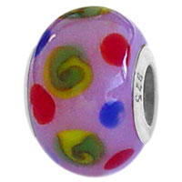 Wholesale silver jewelry - Multi color spots on pink glass bead with 925 sterling silver caps for 3 mm chain European modular charm bracelets and necklaces.