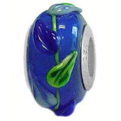 Wholesale silver jewelry - Petals on glass beads with 925 sterling silver caps for 3 mm chain European modular charm bracelets and necklaces.