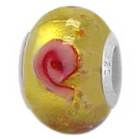 Wholesale silver jewelry - Pink flowers on gold foil glass bead with 925 sterling silver caps for 3 mm chain European modular charm bracelets and necklaces.
