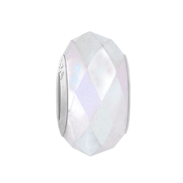 Wholesale silver jewelry - Rainbow AB color facet glass bead with 925 sterling silver cap charm for 3 mm chain bracelets and necklaces, compatible with European modular jewelry.