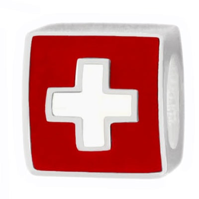 Wholesale silver jewelry - The flag of Switzerland, Swiss flag 925 sterling silver charm for 3 mm chain bracelets and necklaces, compatible with European modular jewelry and Murano bead jewellery.