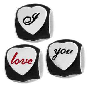 Word I love you on 925 sterling silver beads for 3 mm silver chain bracelets