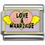 Word LOVE & MARRIAGE with winged heart on stainless steel charms for Italian modular jewelry, compatible with Nomination jewelry and Zoppini jewelry.